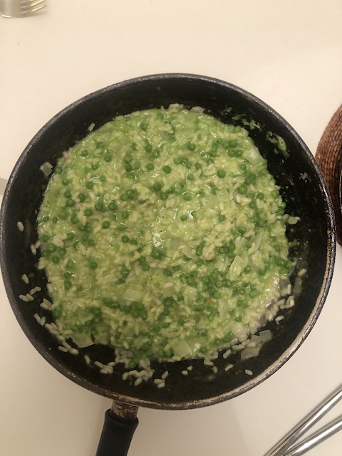 Stir in the pured peas, remaining peas, Parmesan and some seasoning, then turn off the heat and leave to stand for a few mins. Give the risotto a final stir, spoon into shallow bowls and top with some pea shoots and a drizzle of olive oil, if you like.